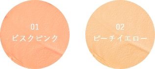 2色展開で、(01 ビスクピンク/02 ピーチイエロー)があります。