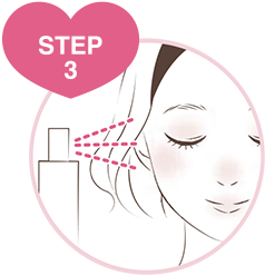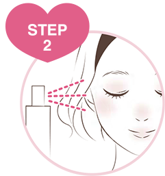 - 〇顔から15cmくらいはなし、目・口を閉じて、顔全体にムラなくスプレーします。 スプレーのあとは、肌に触れずそのまま乾かしてください。